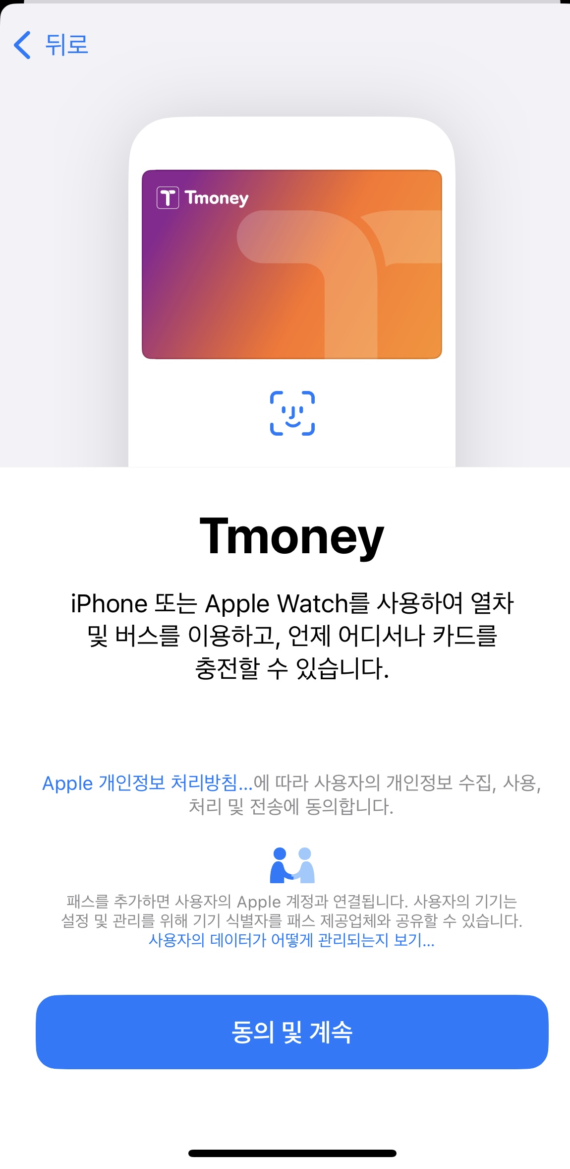 - 애플페이(Apple Pay) 안의 티머니 교통카드는